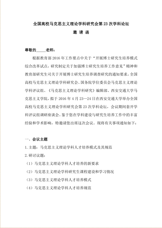 全国高校马克思主义理论学科研究会第23次学科论坛邀请函