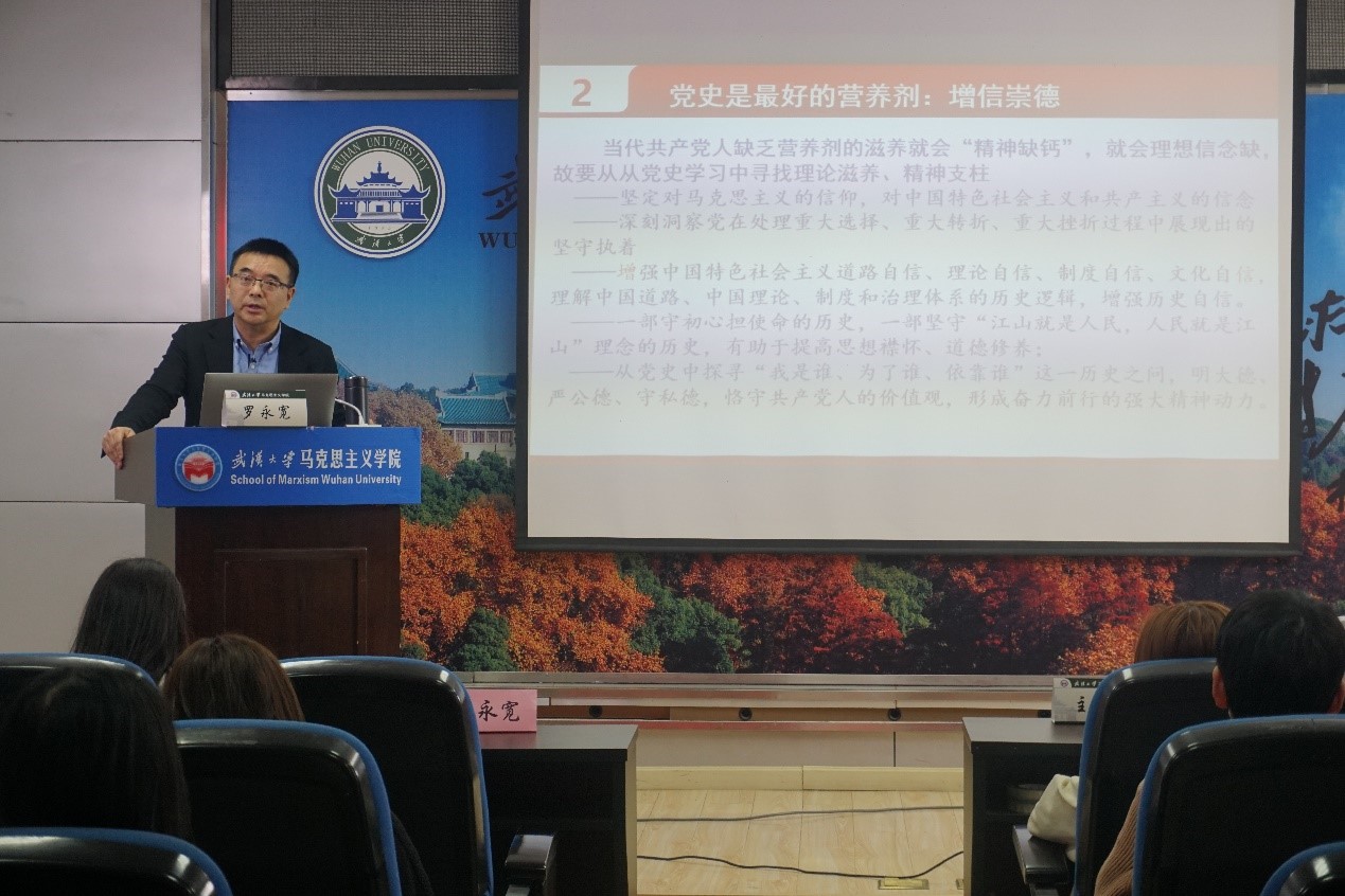 2021年3月18日,马克思主义学院党委书记、博士生导师罗永宽教授应邀做了题为《学深悟透百年党史的门径与取法》的讲座。本次讲座为“学百年党史、担复兴大任”系列专题讲座的第一讲。学院学生入党积极分子、学生党员及部分教师参加,学院学生党总支王璐主持。