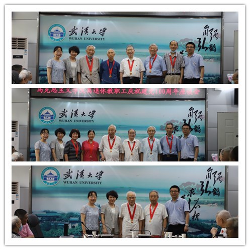 离退休教职工交流座谈环节,气氛庄严且热烈,陈乃宣、宋镜明、黄钊、王长铭、石玉霞、梅荣政、马建离、陈耀林等离退休老师先后谈了他们对建党100周年的感悟,围绕建党100周年光辉历程作了饱含深情的发言,无不诉说着对党的深厚感情。党员金鉴康向党组织上交了1000元“特殊党费”感谢党恩;王新山、王长铭两位党员满怀激情的献唱起党歌,抒发爱党情怀;学院党委领导向老党员们赠与党史学习书籍和党员手册。老党员们纷纷表示他们将不忘初心、牢记使命,退休不褪色,永远听党话、跟党走,一如既往的关注和支持马克思主义学院的发展,同时感谢学院在本次活动中周到细致的安排,表示这次活动给他们带来更多的是温暖与感动。