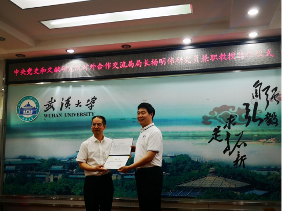 7月11日上午,中共中央党史和文献研究院对外合作交流局局长杨明伟研究员受聘万博手机网页版网址 兼职教授仪式在学院218会议室举行。