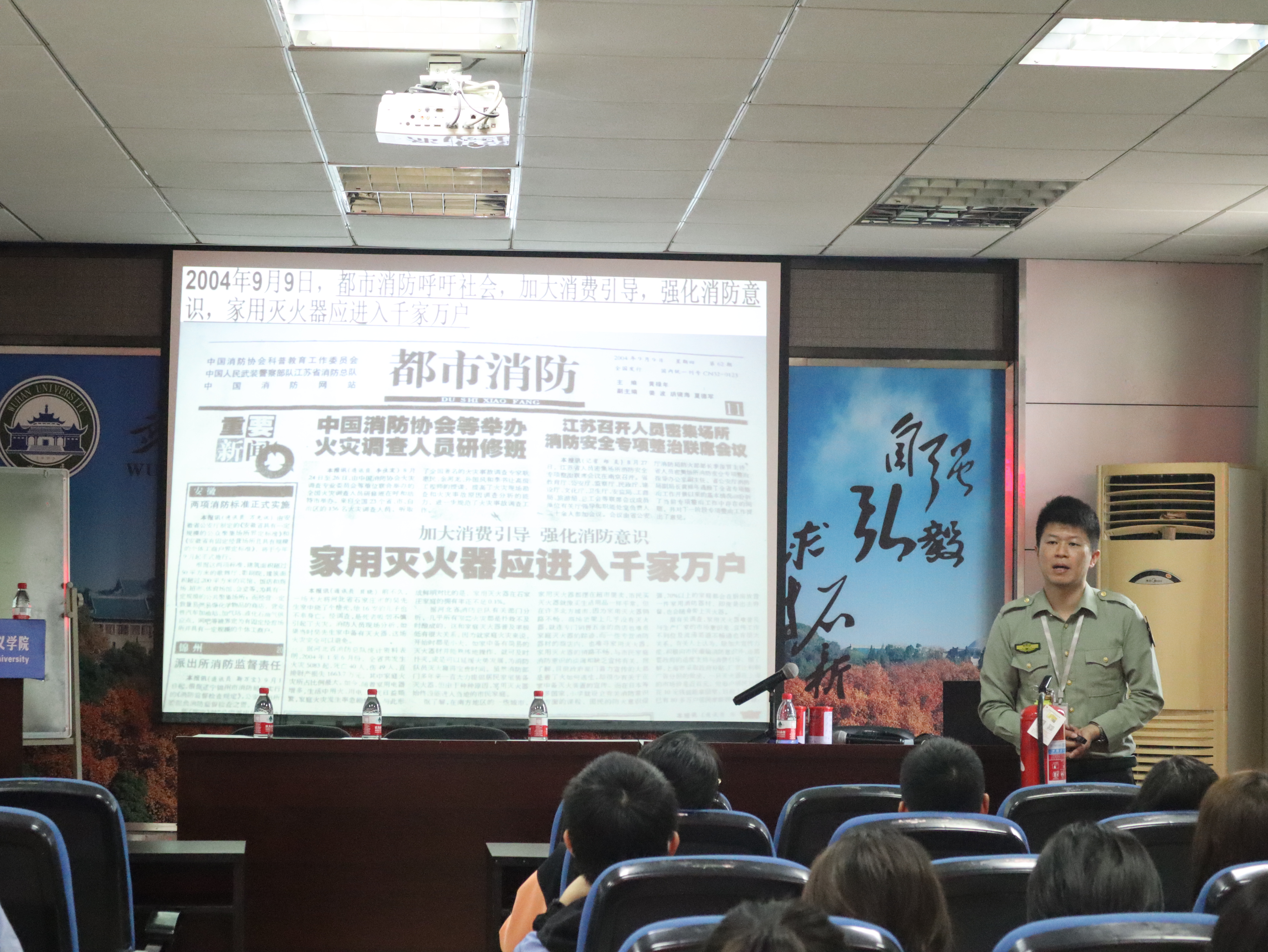 为进一步增强全院教职工与学生的消防意识以及正确处理火灾突发事件的自救能力,切实做好消防安全预防工作,学院于11月4日在301报告厅举行了消防安全教育培训讲座。来自湖北省普消消防宣传中心的廖教官应邀为马克思主义学院师生代表宣讲消防安全知识。