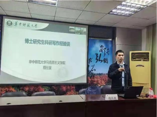 11月5日下午,学院M301报告厅座无虚席。我院2016级博士院友、首届马院榜样、华中师范大学讲师、硕士生导师程仕波回到母院为在读博士生们分享科研写作经验。分享会由学院博士生辅导员高裕主持,院党委副书记孙燕出席,全体博士生参加了此次分享会。