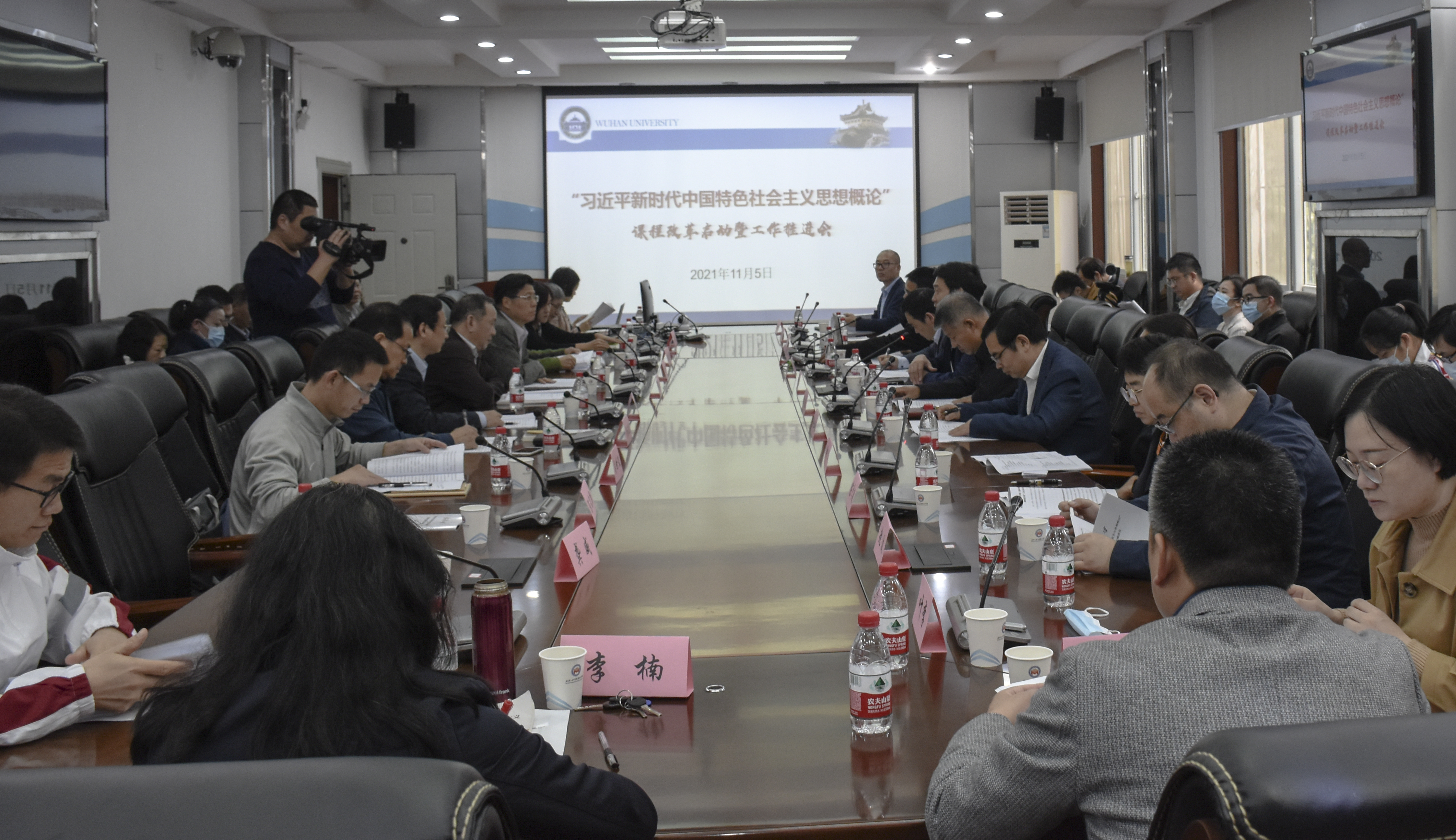 为全面推动习近平新时代中国特色社会主义思想进教材进课堂进头脑,贯彻中办、国办、中共中央宣传部、教育部印发的文件精神,11月5日,“习近平新时代中国特色社会主义思想概论”课程教学改革推进会在马克思主义学院218会议室召开。党委书记韩进,党委副书记、马克思主义学院院长沈壮海,副校长徐业勤,党委宣传部、党委万博安卓手机客户端下载 部、本科生院等相关职能部门,各专题首席专家,马克思主义学院本课程中心全体教师与会。