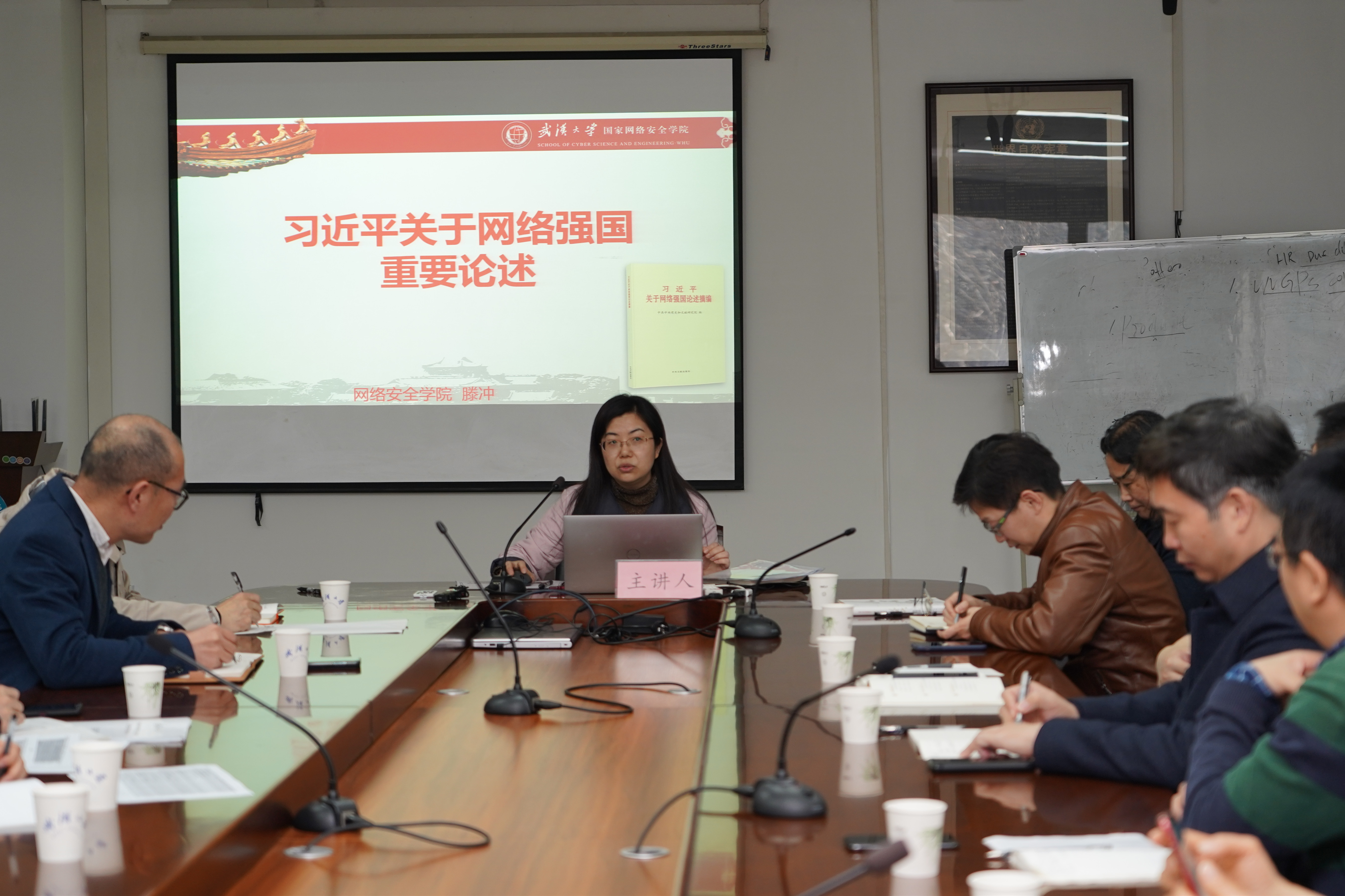 滕冲汇报了关于网络强国相关文献的整理,对网络强国的提出背景、战略部署、强国有我的参与方式等教学内容进行了阐述。