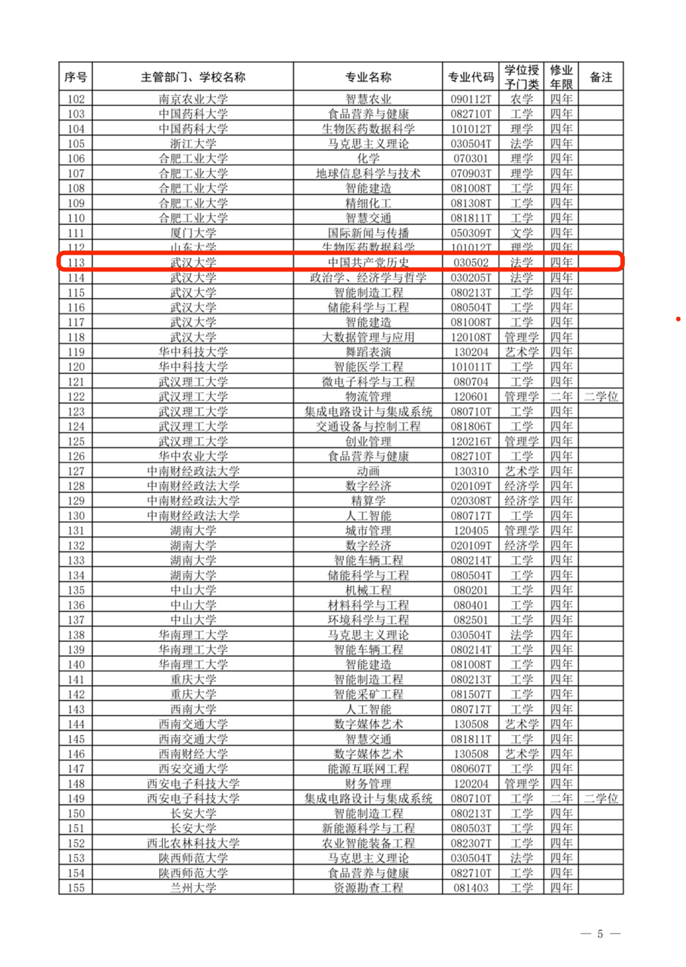 (通讯员:武马轩) 近期,教育部公布2021年度普通高等学校本科专业备案和审批结果,武汉大学新增“中国共产党历史”本科专业(专业代码030502)。增设后,学院本科专业方阵进一步壮大、新时代党史党建专业人才输送能力进一步提升。