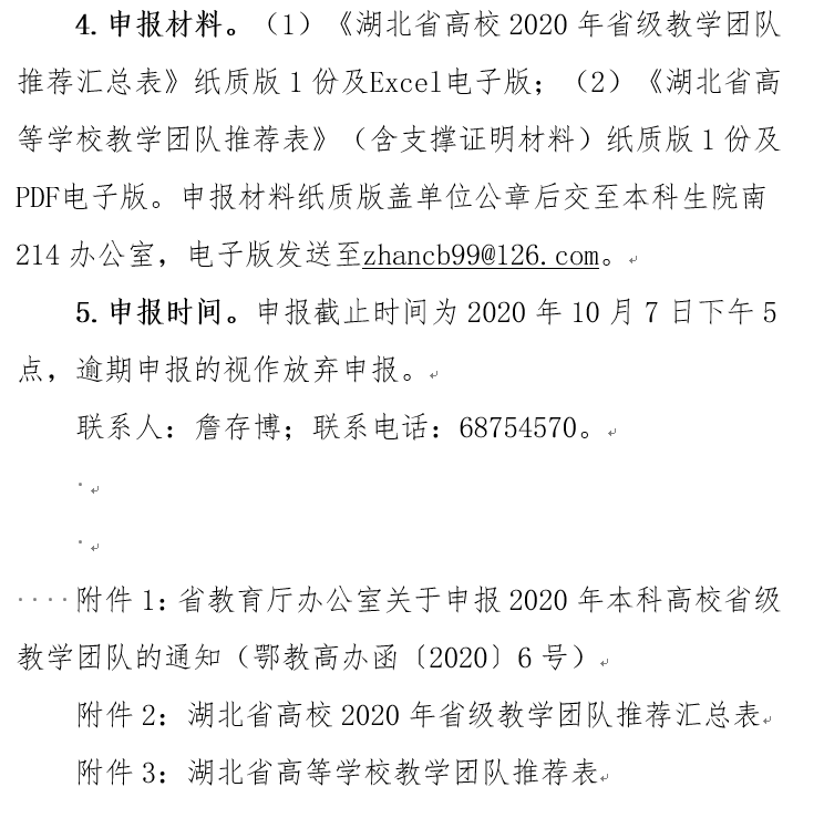 附件1:鄂教高办函〔2020〕6号 省教育厅办公室关于申报2020年本科高校省级教学团队的通知.pdf