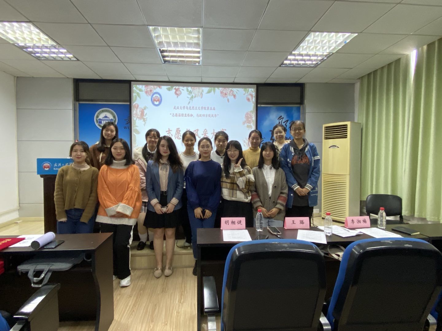 掬一缕秋阳向暖,抔一怀温情向善。伴随着秋日暖阳与阵阵和风,2020年11月14日上午9:00,万博手机网页版网址 第五届“志愿温情盈珞珈,马跃四方绽风华”志愿者风采大赛的现场风采展示环节于马克思主义学院301报告厅正式拉开帷幕。本次活动邀请到了院学生团委副书记王璐与李湘楠担任评委。