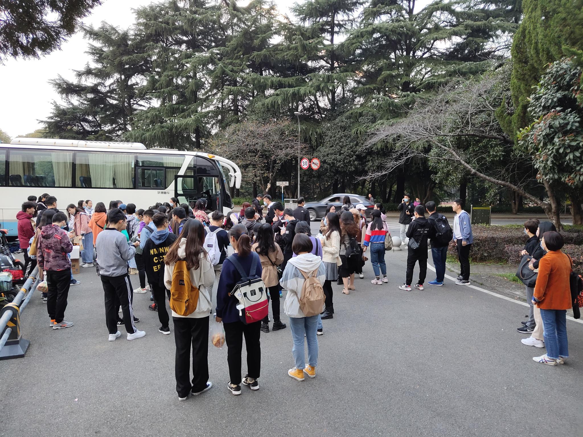清风徐徐,即将入冬的武大校园带上了丝丝凉意,但同学们仍按捺不住洋溢着的热情和激动的心。在领取面包与牛奶等营养早餐后,同学们兴高采烈地踏上了旅途。
