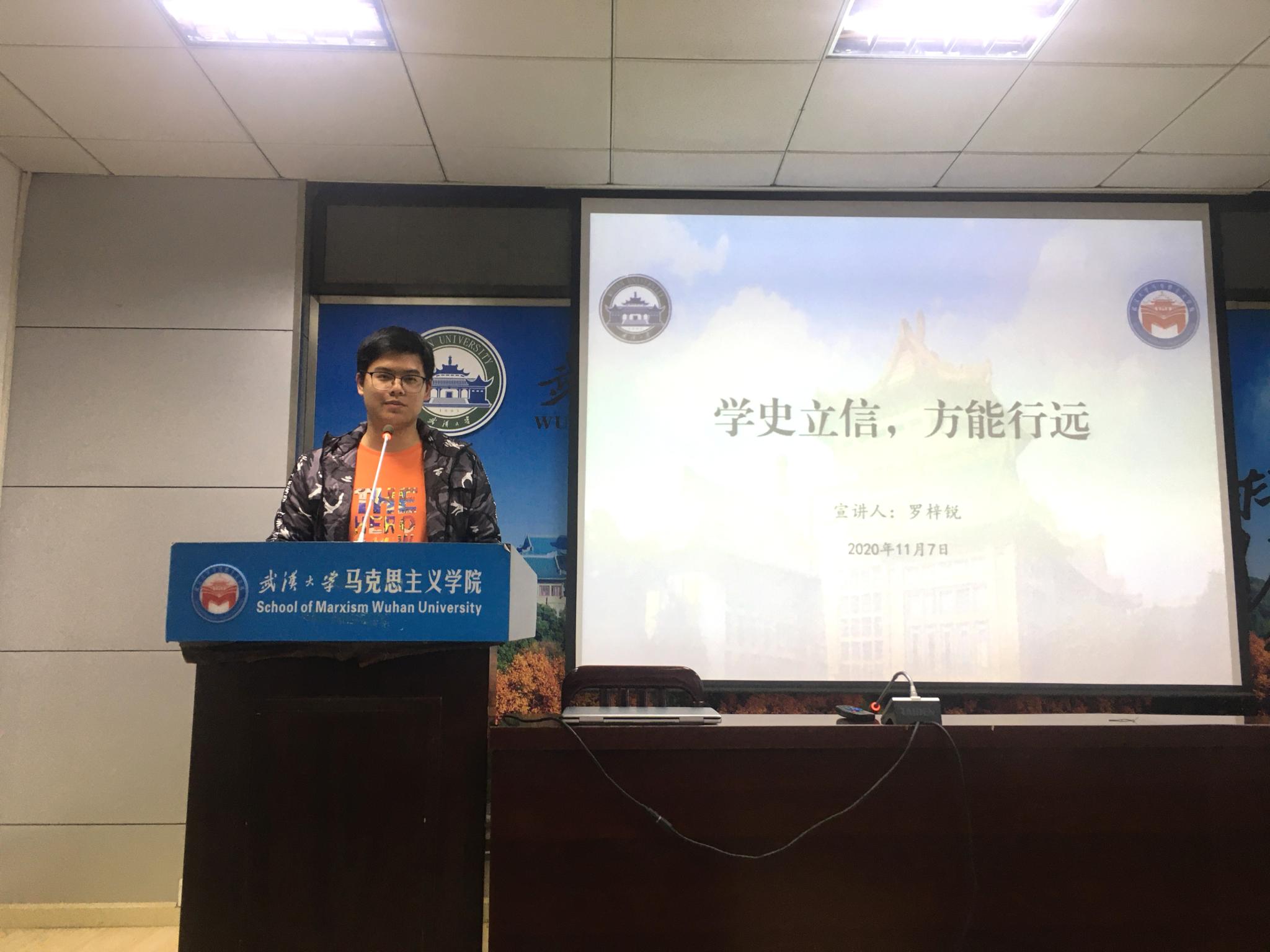 2020年11月7日下午3时30分,我院青年讲师团讲师罗梓锐在301教室发表了一场以“学史立信,方能行远”为主题的宣讲。