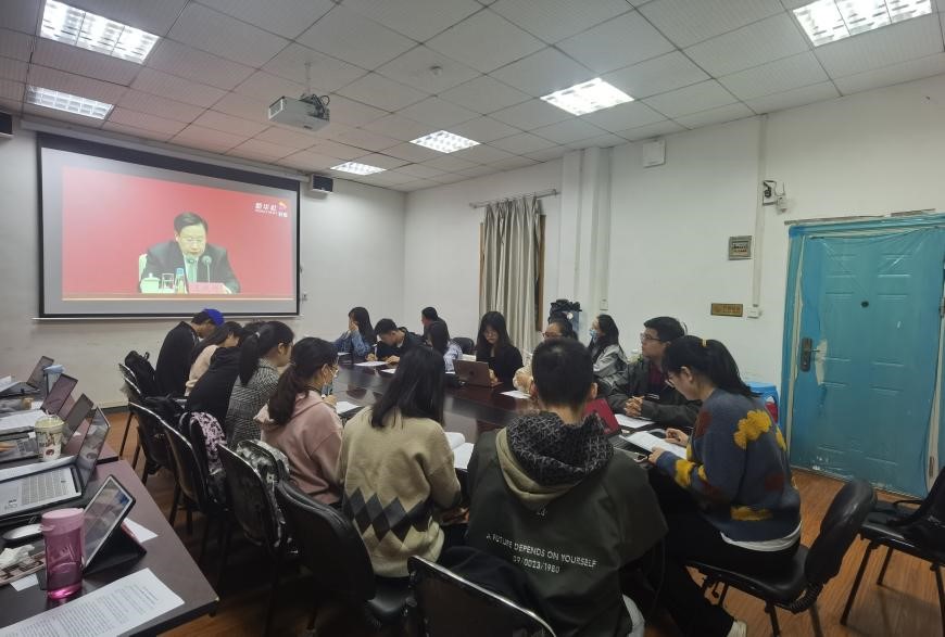 团支部书记侯成润组织支部成员集体观看中共中央关于介绍党的十九届六中全会精神的新闻发布会,深化支部成员对全会精神与公告内容的理解与认知。