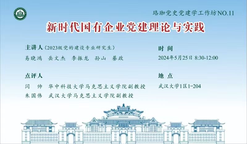 上一条:【珞珈党史党建学工作坊NO.12】两新组织党的建设的理论与实践