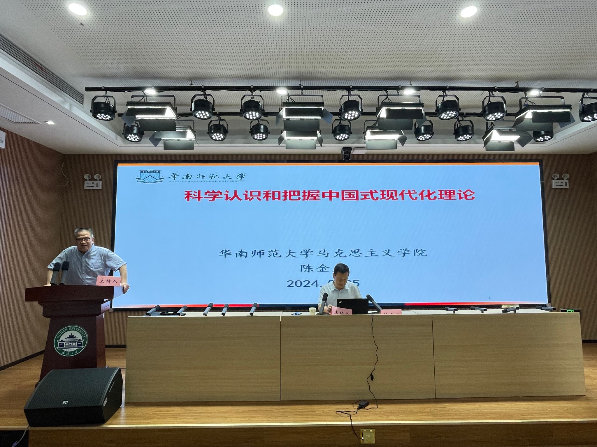 2024年5月25日上午,国家级人才项目入选者、华南师范大学马克思主义学院陈金龙教授,作客万博手机网页版网址 “马克思主义与当代中国论坛”第212期,在学院学术报告厅为师生们作了题为“中国式现代化演进的逻辑”的学术讲座。讲座由万博手机网页版网址 宋俭教授主持,李华教授、徐嘉鸿副教授、周迪老师及相关专业研究生、本科生参加活动、交流学习。