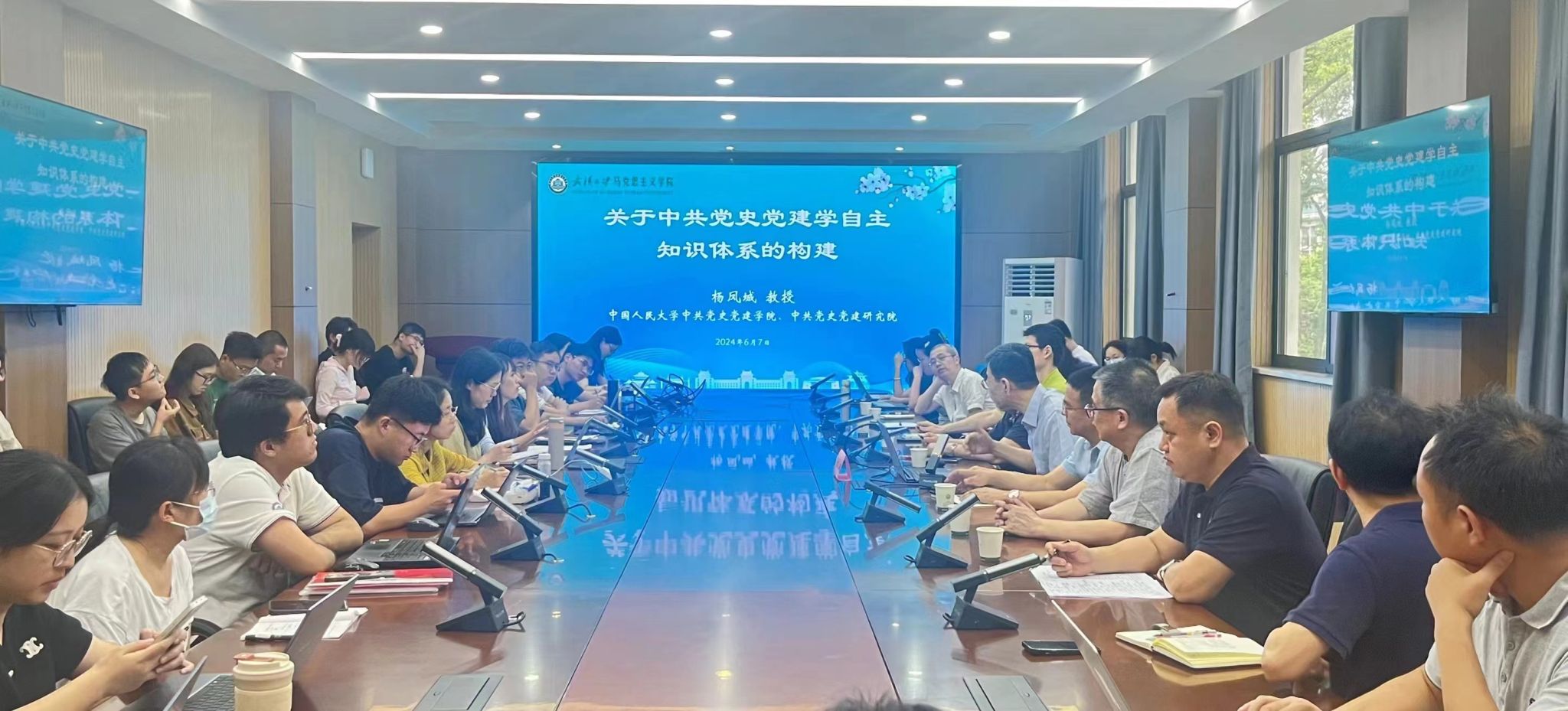 2024年6月7日下午,中国人民大学中共党史党建学院院长、国家级人才项目入选者杨凤城,应邀来我院作题为“关于中共党史党建学自主知识体系的建构”学术讲座。本次讲座系“中国共产党与当代中国”论坛第46期,讲座由院长罗永宽教授主持,丁俊萍教授、宋俭教授等中共党史党建及相关学科点的师生共50余人参加。